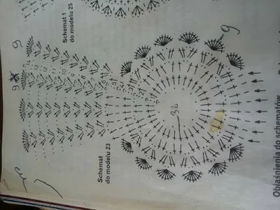 Od 5-go rzędu robimy tylko w zaznaczonych miejscach /omijamy te 6 wachlarzyków i zamykamy w kółko część zrobioną z drugiego końca omijamy kolejne wachlarzyki i znów łączymy/.