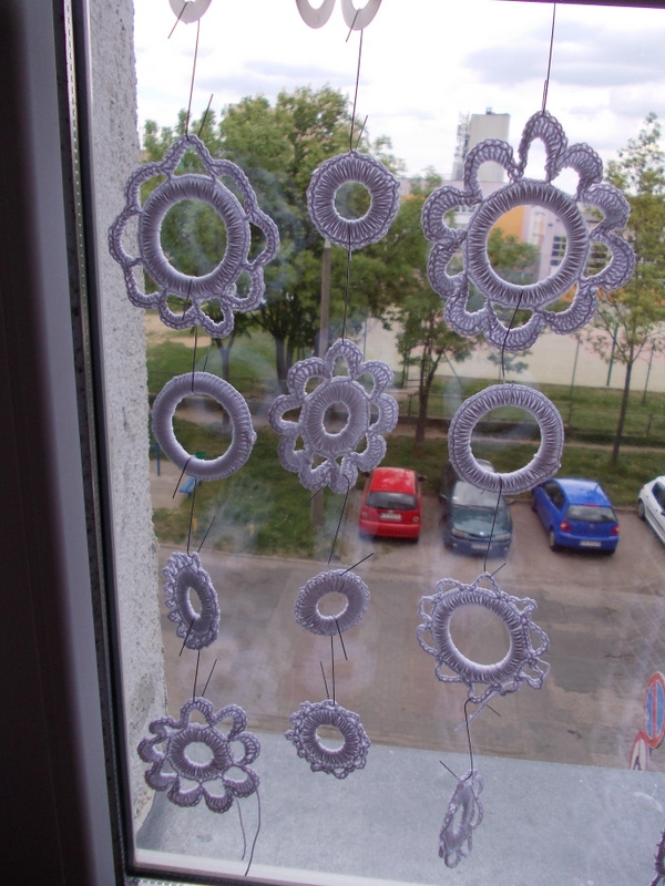 Wymyśliłam zazdroskę na okno wykonaną z elementów wykonanych na plastikowych kółeczkach.Jeszcze nie wiem jak je połączę, bo na razie eksperymentuję.